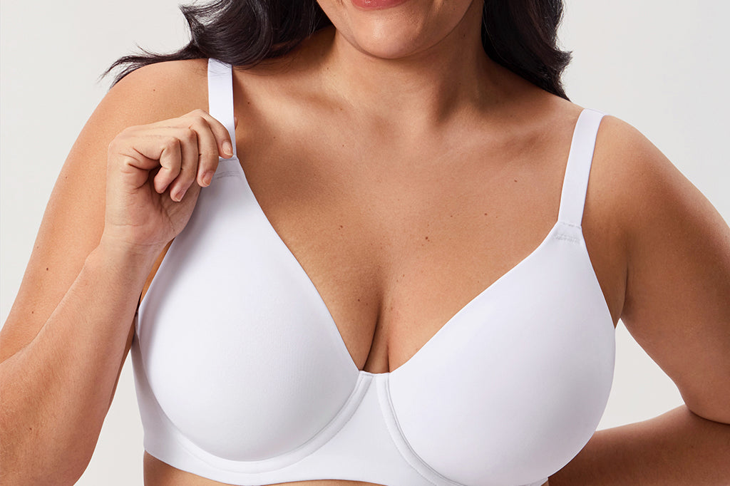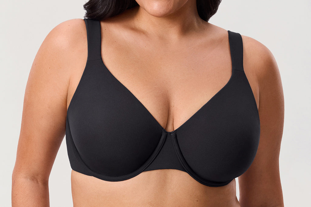 Extremely comfortable, with no pinching or binding, and so soft. Holds the girls in place, shows a smooth back, and the best part (for me!) is that it has straight running straps!