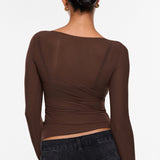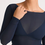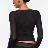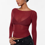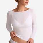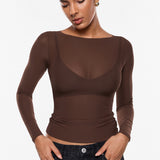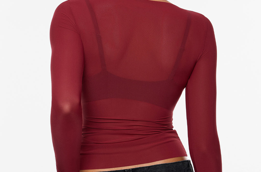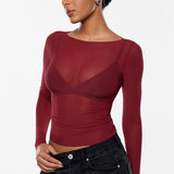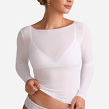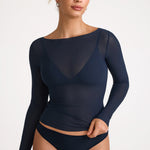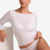 From the Cosnufy Collection, this mesh boat-neck top captures an easy balance of sensuality and comfort. Its airy, lightweight feel and delicate transparency add a touch of effortless charm—made to complement everything from casual denim to sleek night-out looks.
