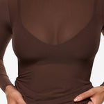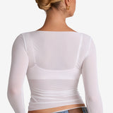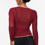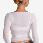 Cosnufy Mesh Sheer Long Sleeve Tops